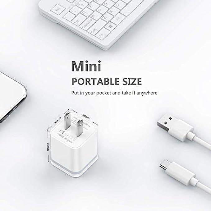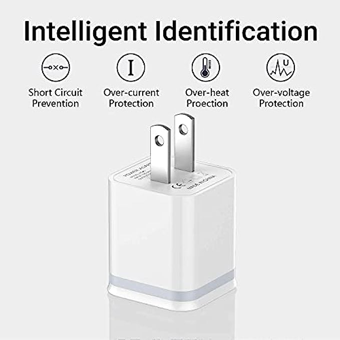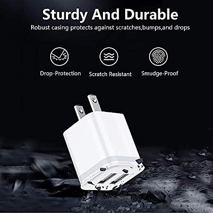 Widely Compatibility: USB Charger for Phone 13 12 11 Pro Max Xs max XR X/8/7/6/6S Plus SE 5S/5/5C, Pad, Pod, Note, HTC, LG, Motorola, Samsung Galaxy, Google Pixel and more phones. Parameter: USB Output: 2.1Amp 5V. which enables to charge your two smart phone or tablet devices simultaneously at maximum speed. Compact Design: Heat resistant and Anti-throw design, Compact and Easy to carry, Comfortable grip, Suitable use for home, travel, office, and business trip. Phone protection: Fireproof material. Charger brick has the function of automatic protection circuit. Intelligent circuit design protects against short circuiting, over-heating, over-current, and over-charging. Package includes: LUOATIP 3-Pack Dual Port USB wall charger block.
